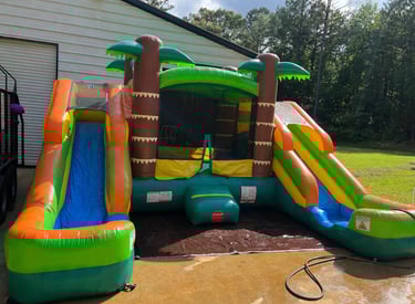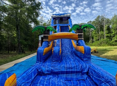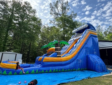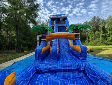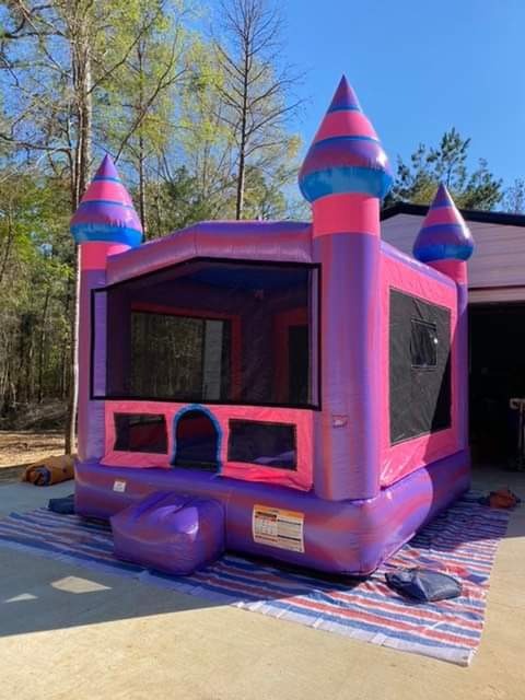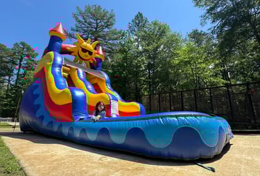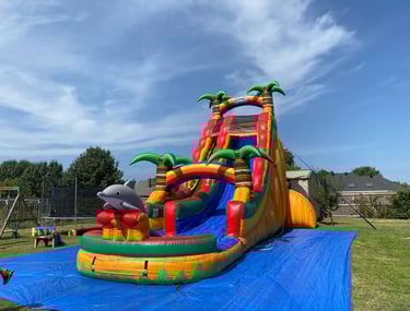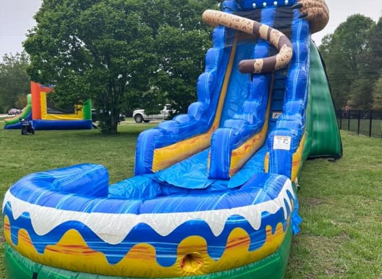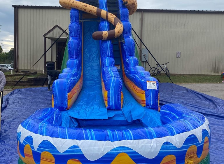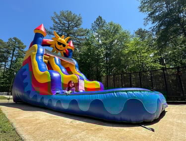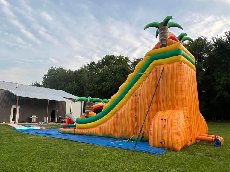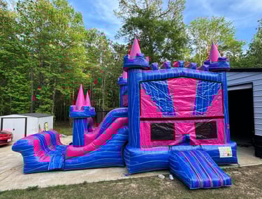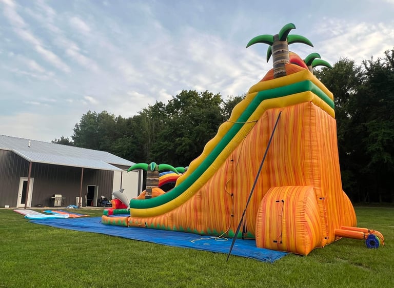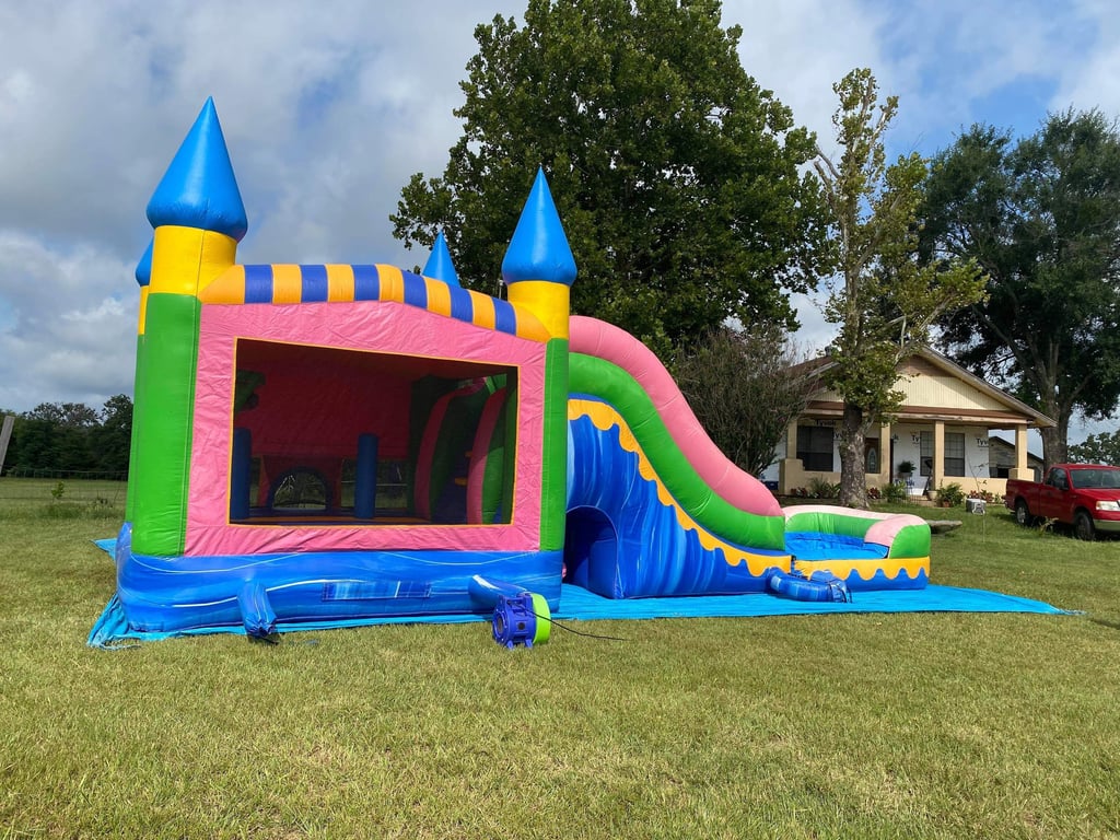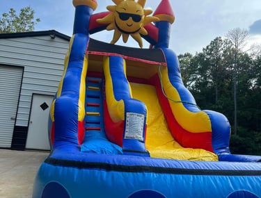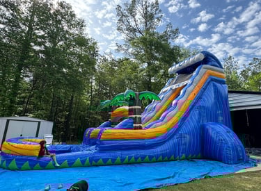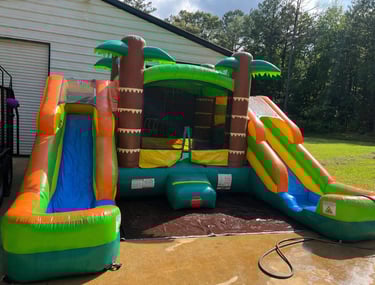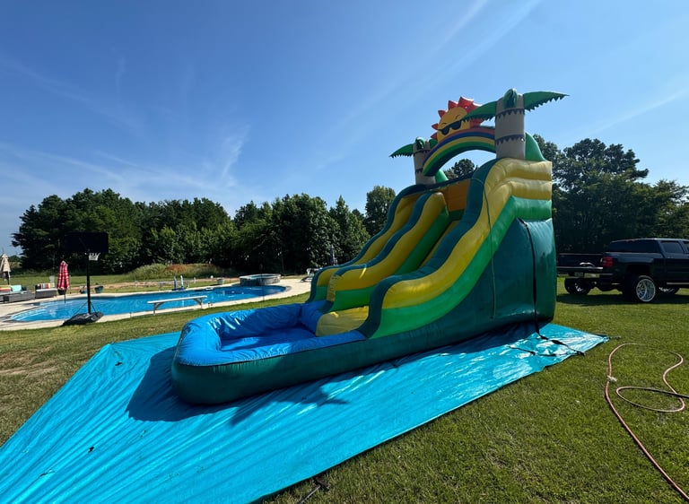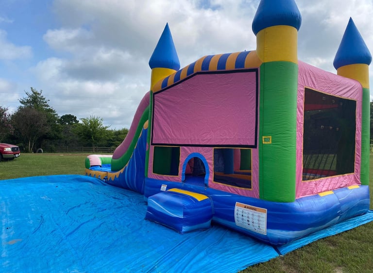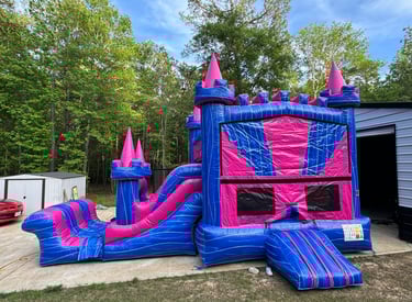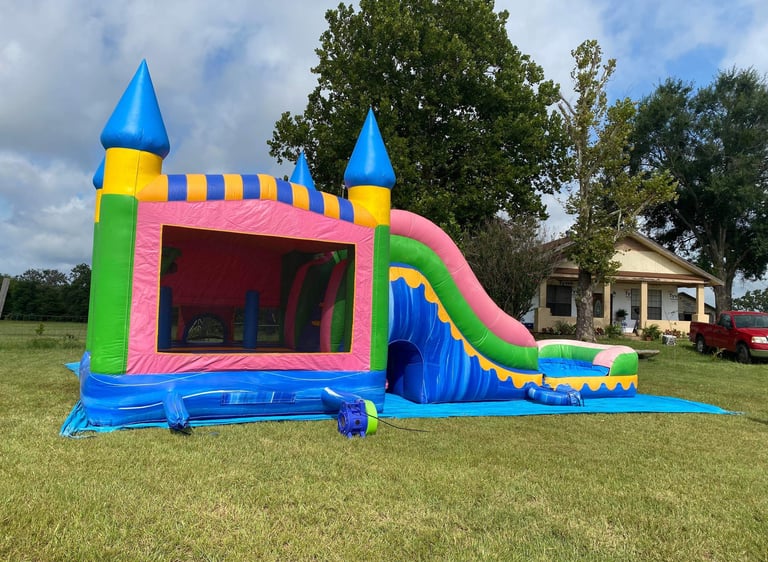 Our inflatable bounce houses and water slides are for 24-hour rentals, which include pickup and delivery, along with all the necessary equipment for setup.