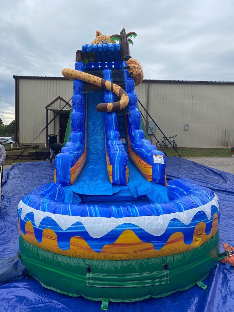 The largest in the area at 27 feet high and 40 feet long, capable of accommodating all ages, including adults. A spacious yard is required as these are not typical slides, Weighing around 700 lbs