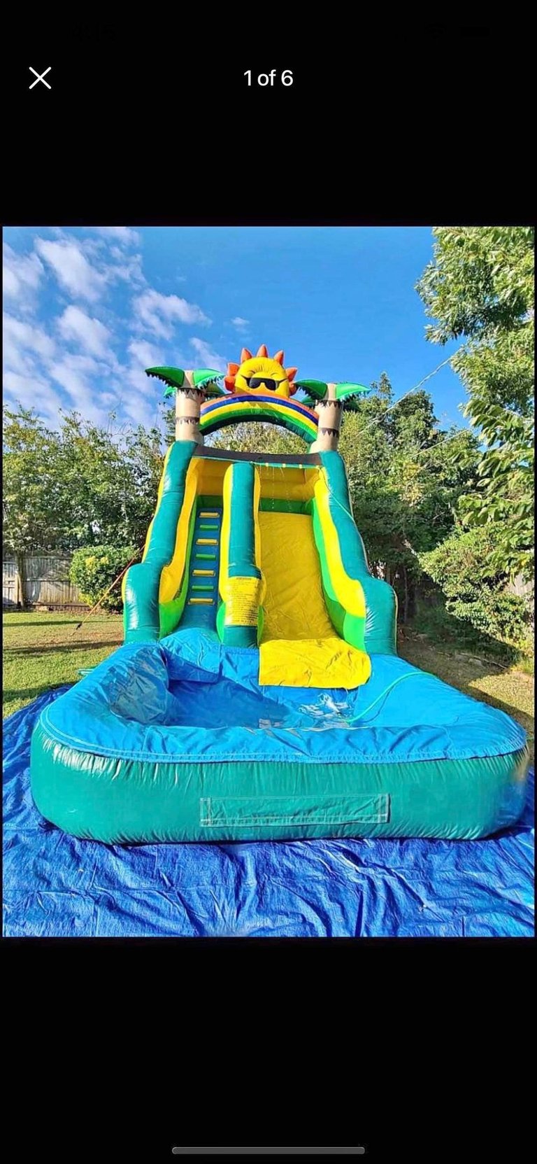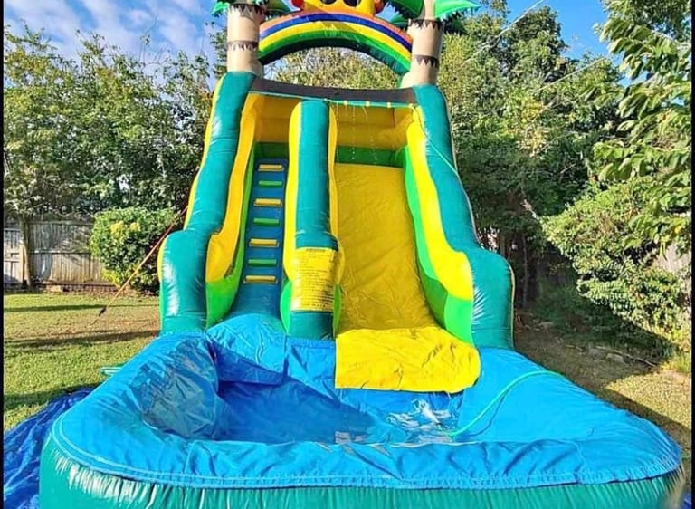 16x16 feet double slide and pool for toddlers aged 1-6! Suitable for wet or dry use